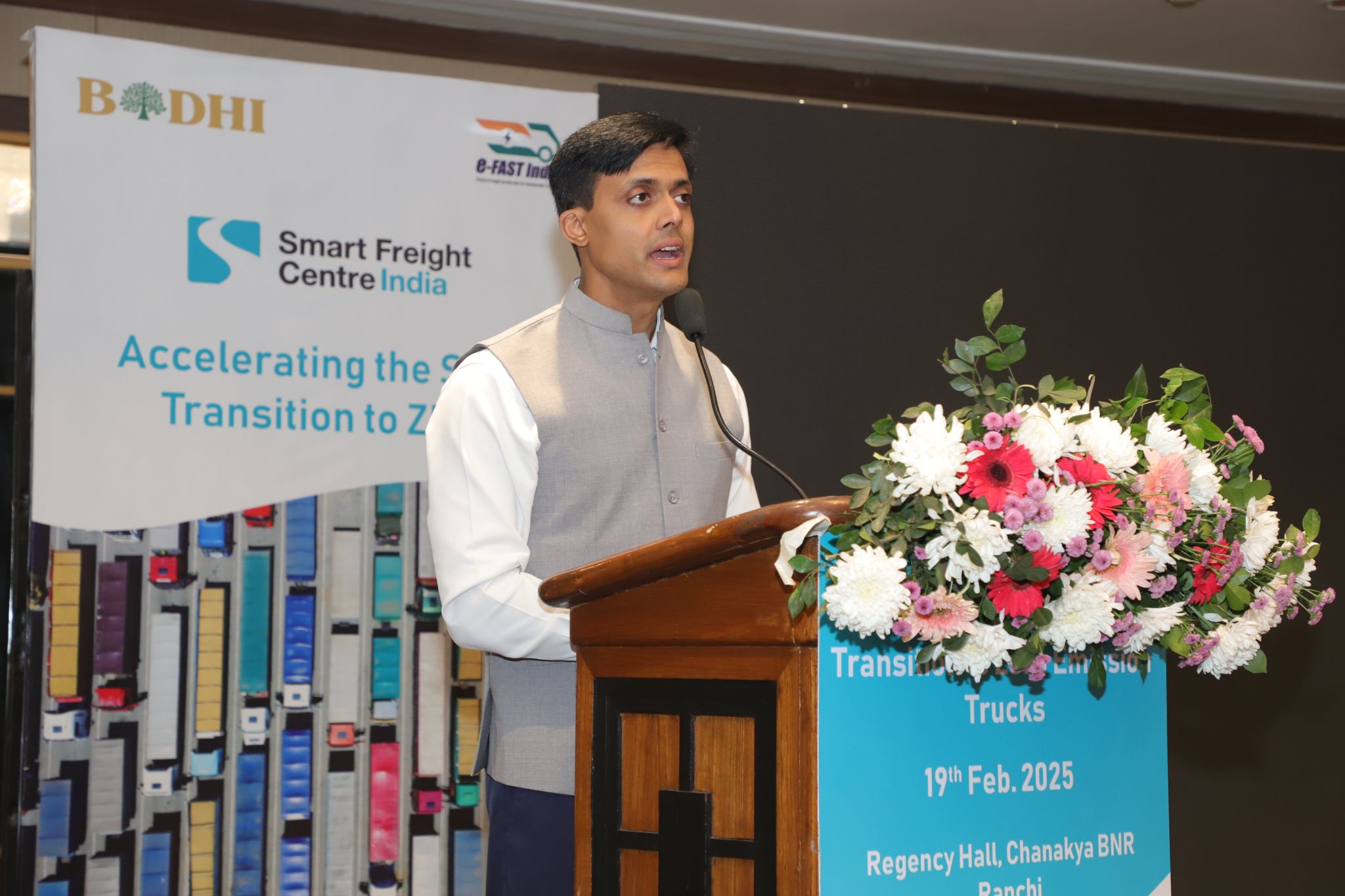 Under the e-FAST Initiative, Smart Freight Centre India hosted a Zero Emission Trucks (ZET) Enablement Workshop in Ranchi today, in collaboration with the Department of Industries, and the Government of Jharkhand. This workshop brought together key stakeholders, including policymakers, industry leaders, and technology experts, to accelerate ZET adoption in India’s medium and heavy-duty truck sector.